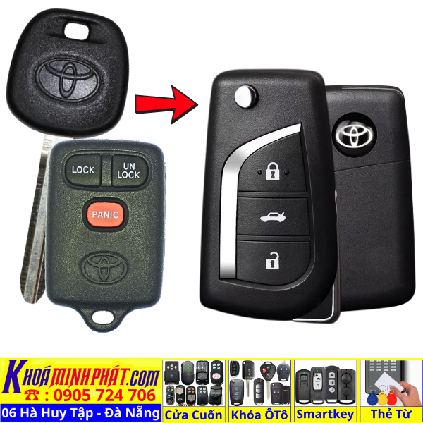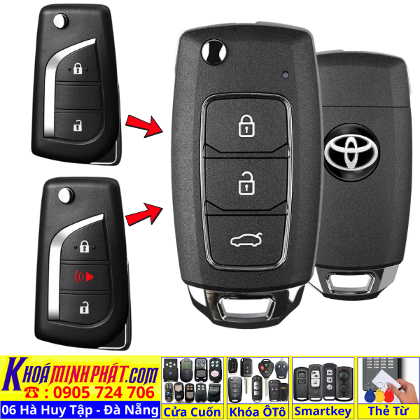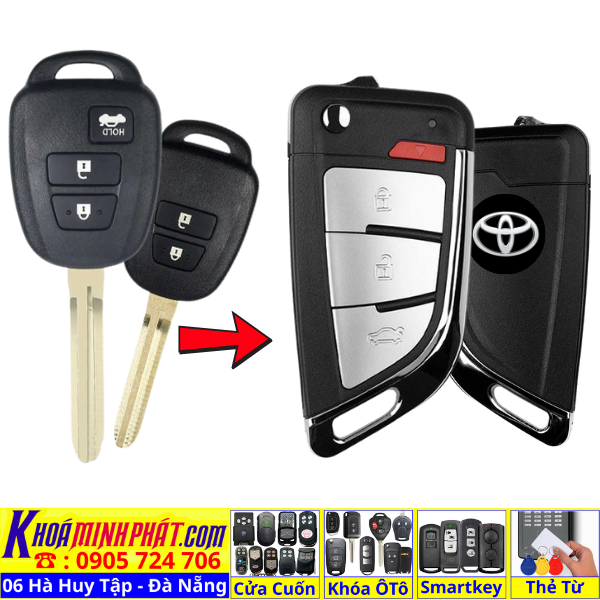 Chìa khóa độ gập remote Toyota Innova, Fortuner, Vios, Hilux, Yaris, Corolla Altis có mạch điều khiển Đời 2006 2007 2008 2009 2010 2011 2012 2013 học lệnh từ xa V11