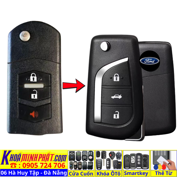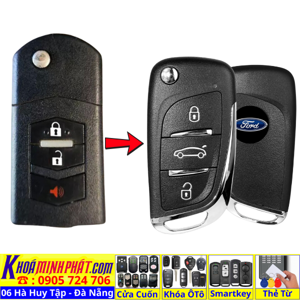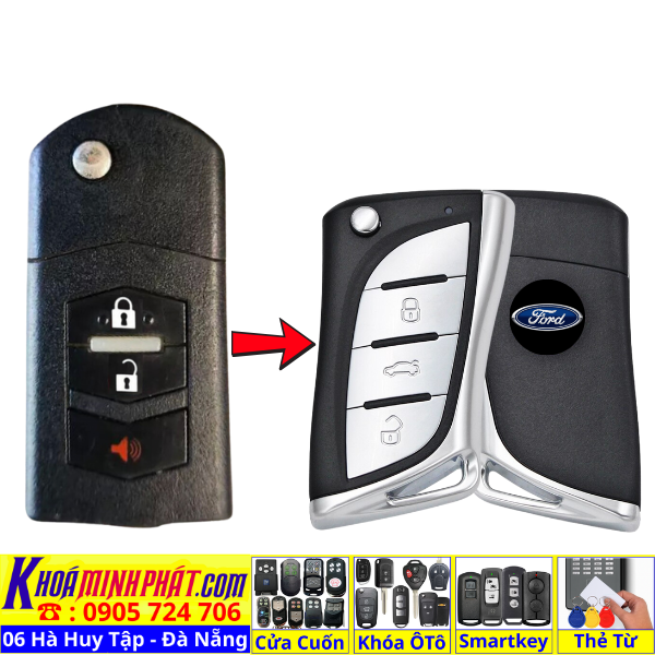 Làm chìa khoá xe Ford Ranger, Tourneo, Ecosport đời 2010-2016 remote học lệnh xe ô tô mẫu mới V12