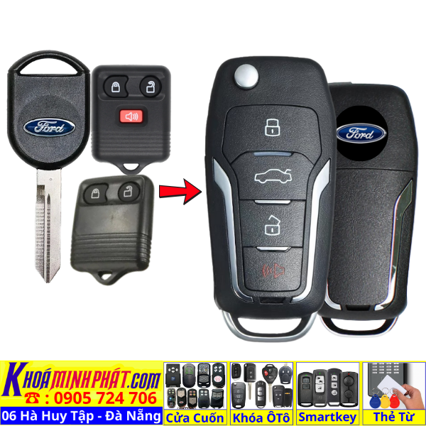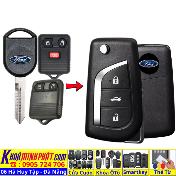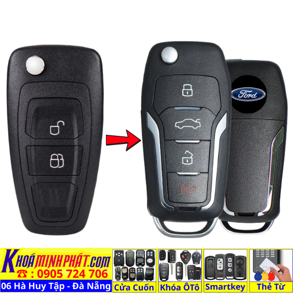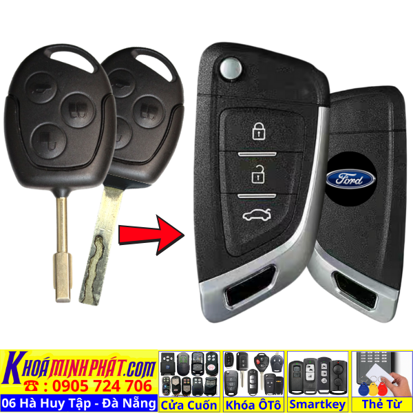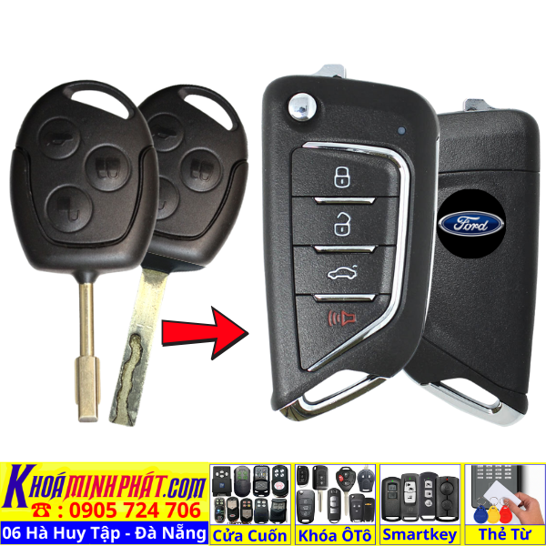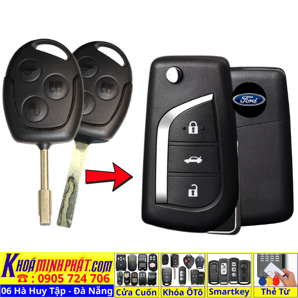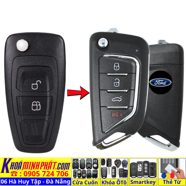 Làm chìa khoá xe Ford Focus Fiesta Mondeo Ecosport remote học lệnh xe ô tô Full chức năng V12