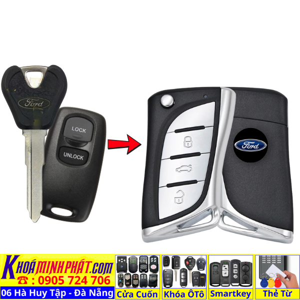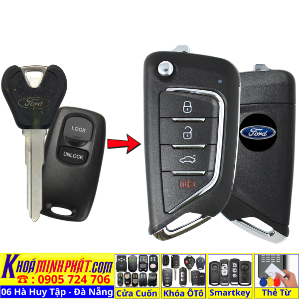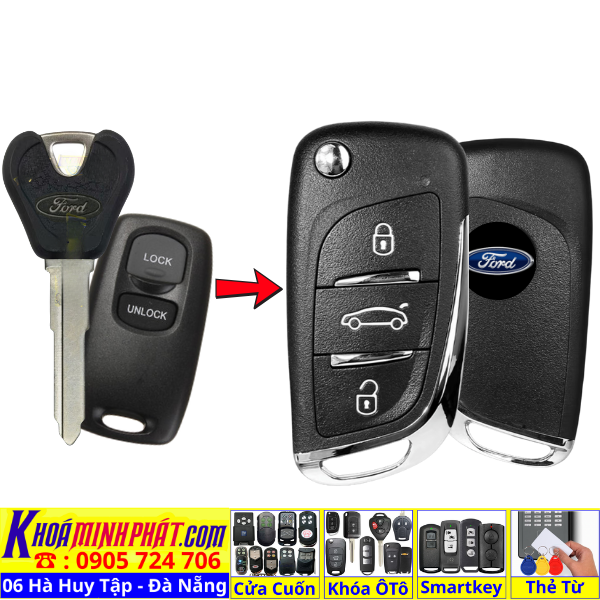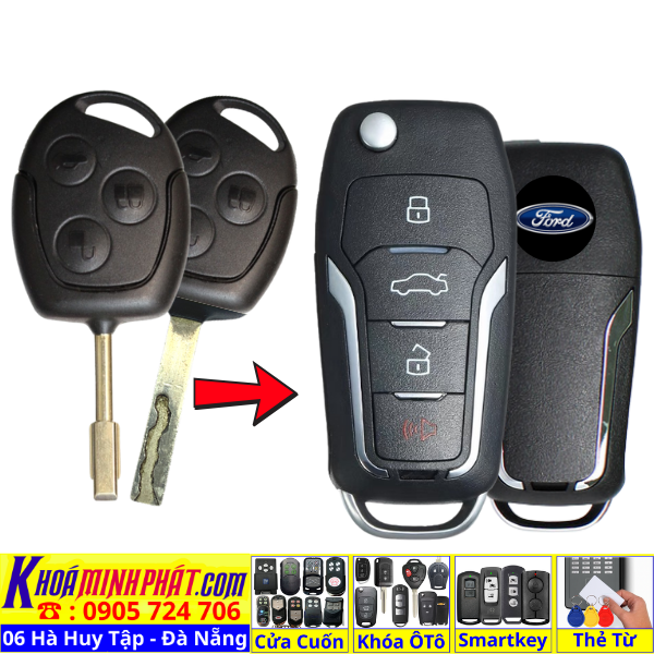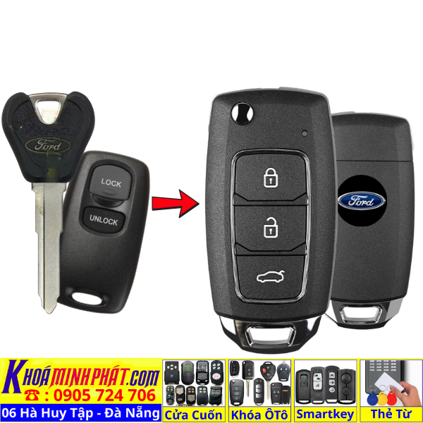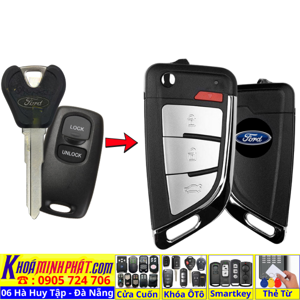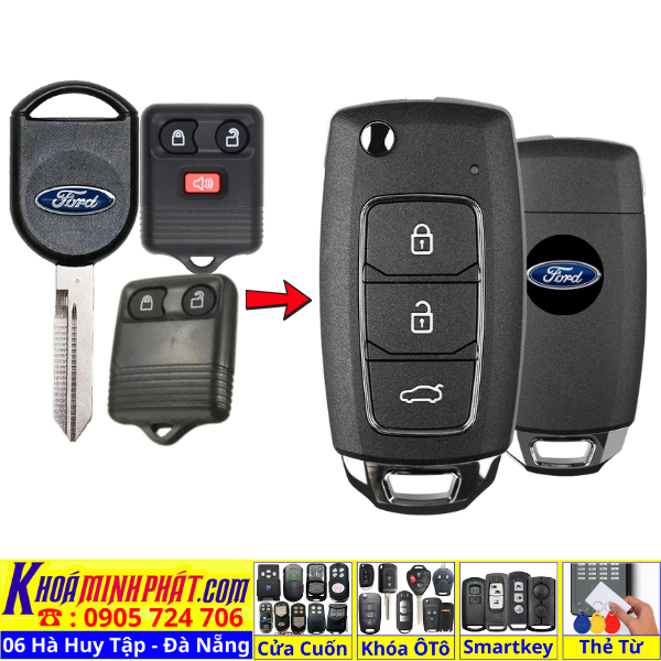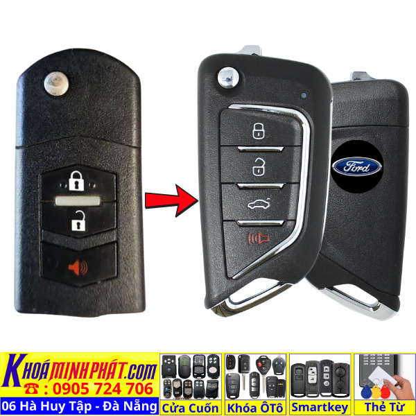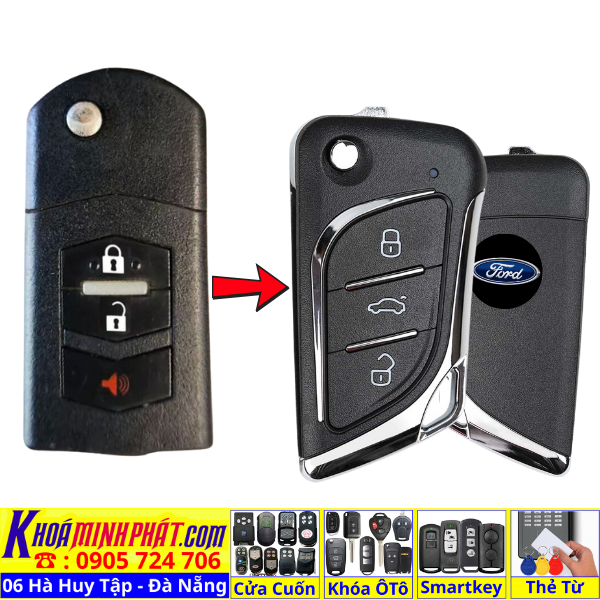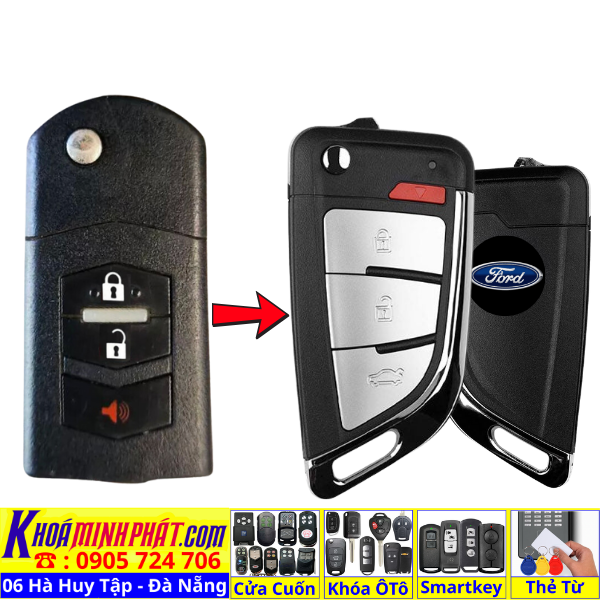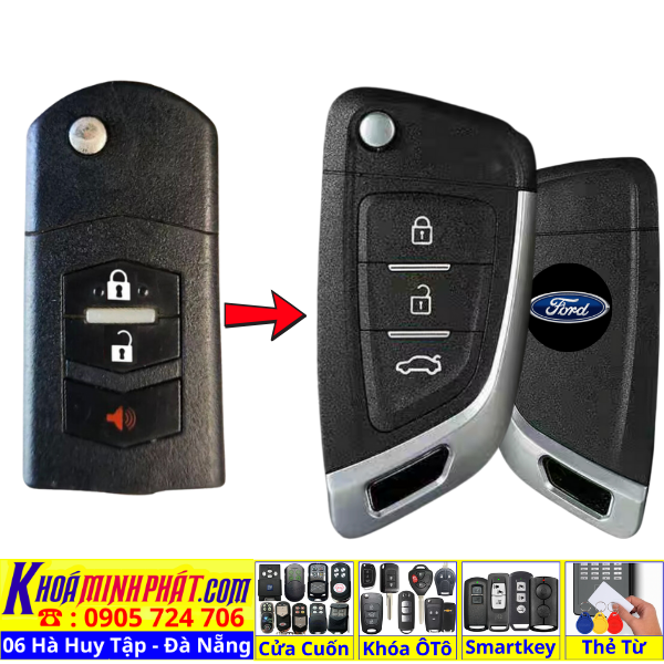 Làm chìa khoá xe Ford Ranger, Tourneo, Ecosport đời 2010-2016 remote học lệnh xe ô tô mẫu mới V14