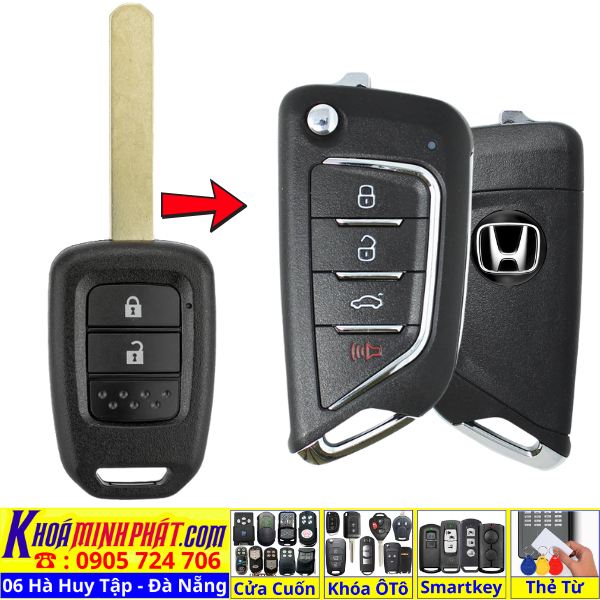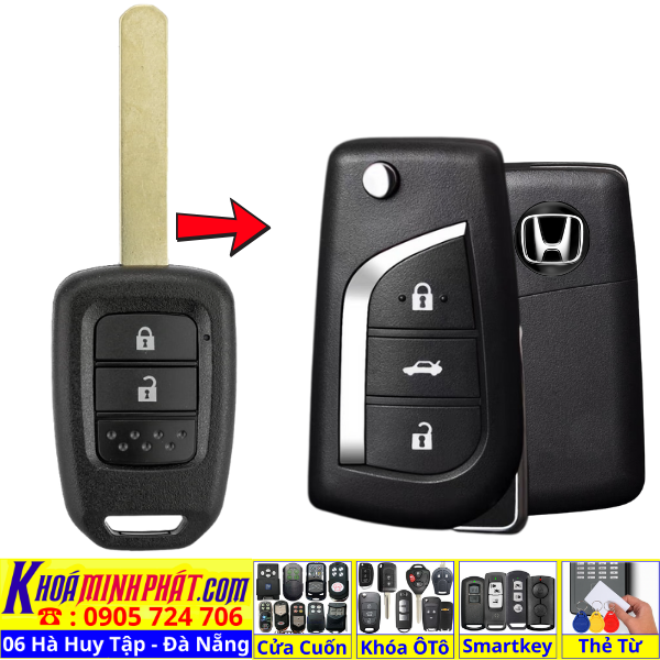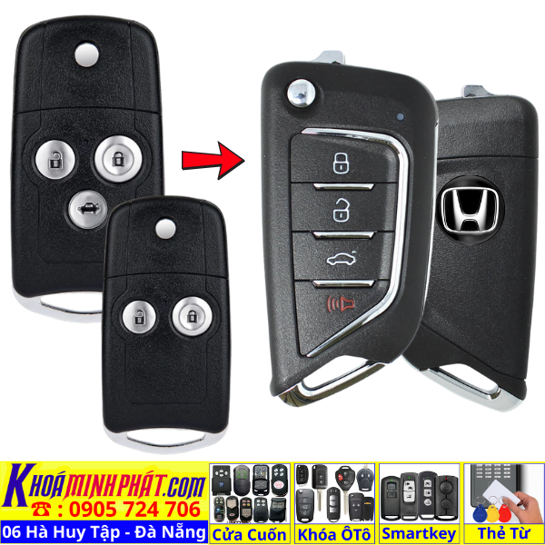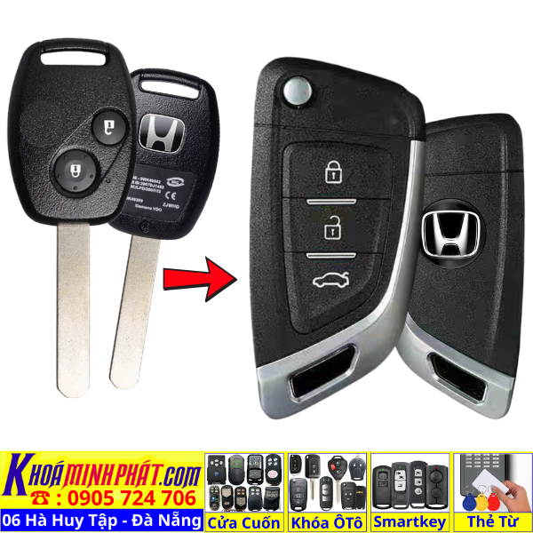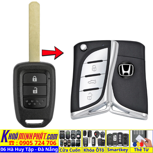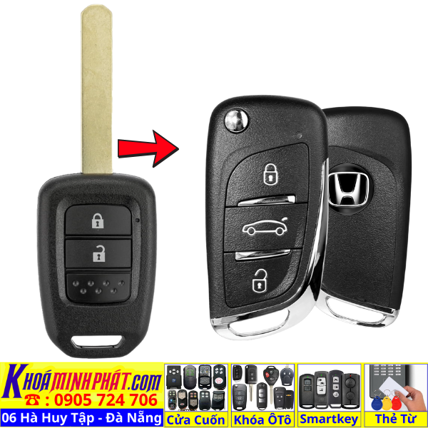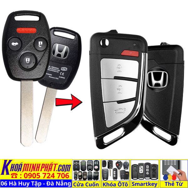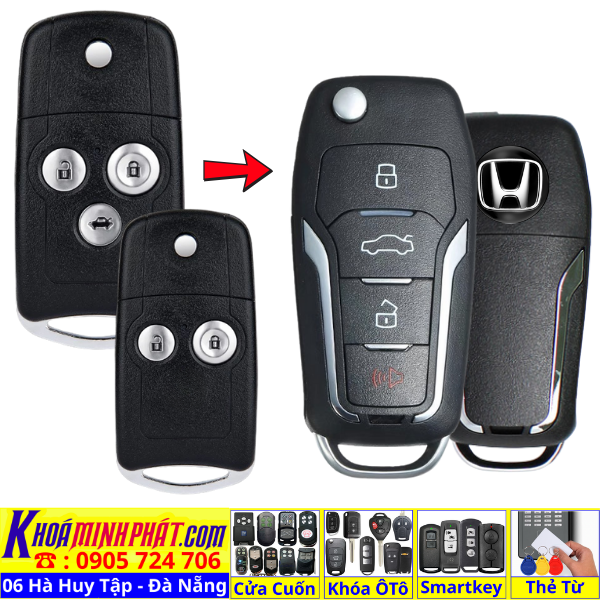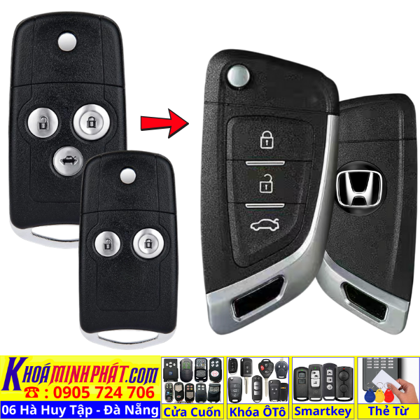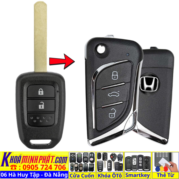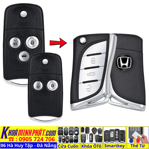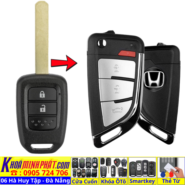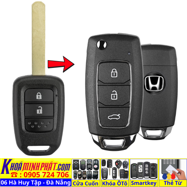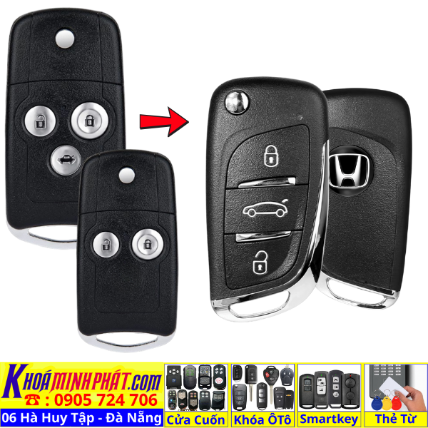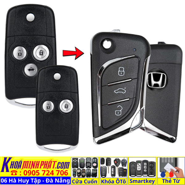 Chìa khoá gấp gọn Honda Civic CRV Accord Jazz đời 2010-2016 remote học lệnh xe ô tô full chức năng