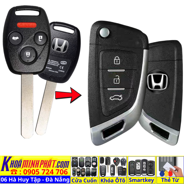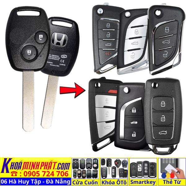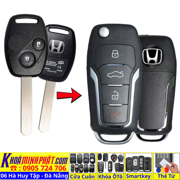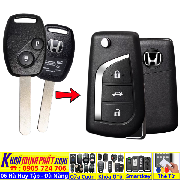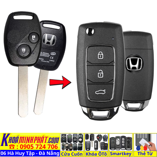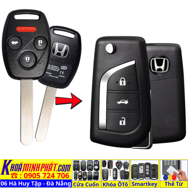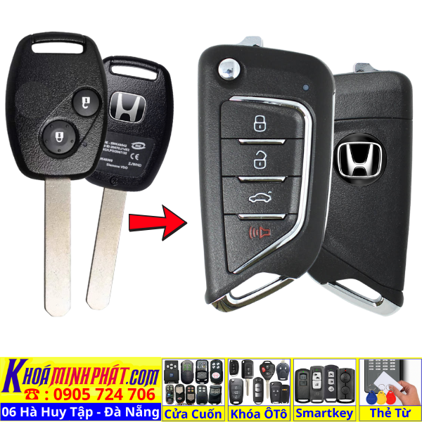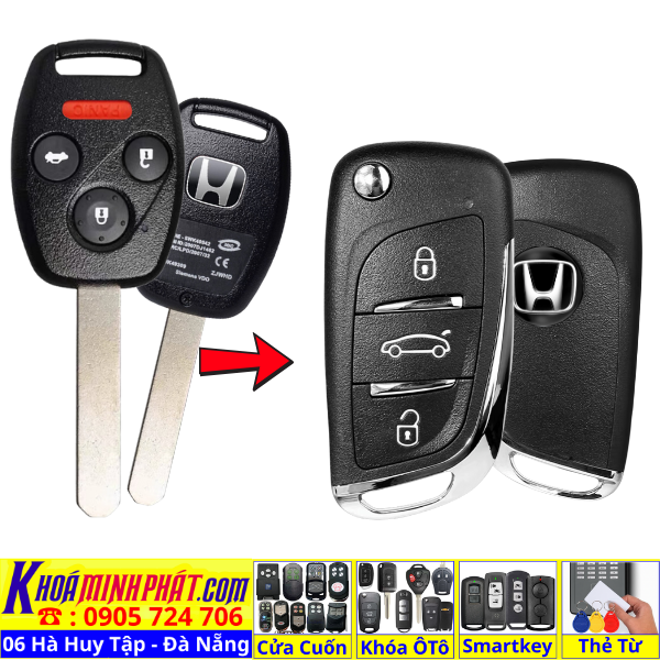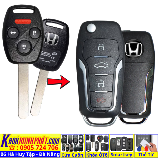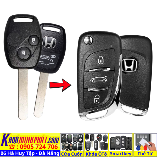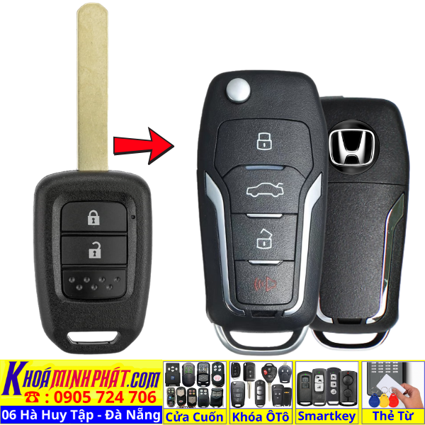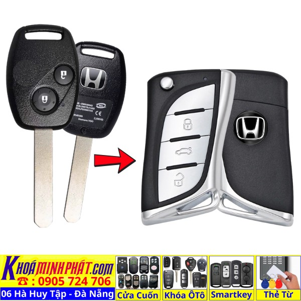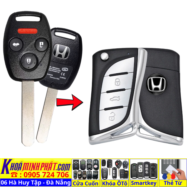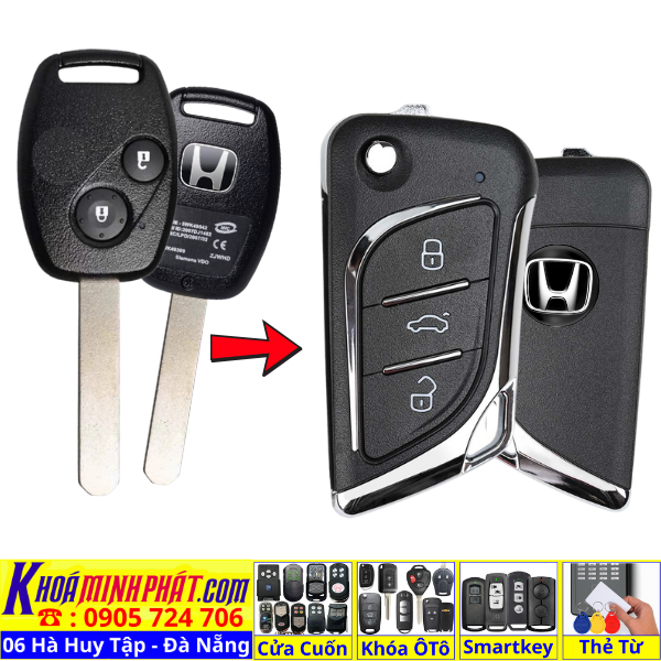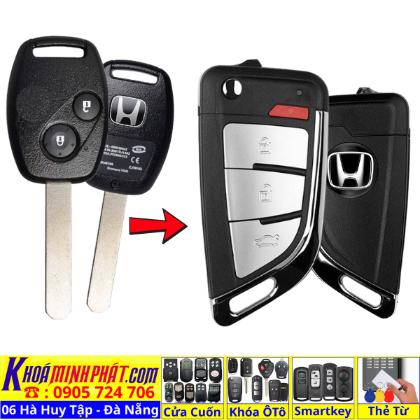 Chìa khoá gấp gọn Honda Civic CRV Accord Jazz đời 2010-2016 remote học lệnh xe ô tô full chức năng